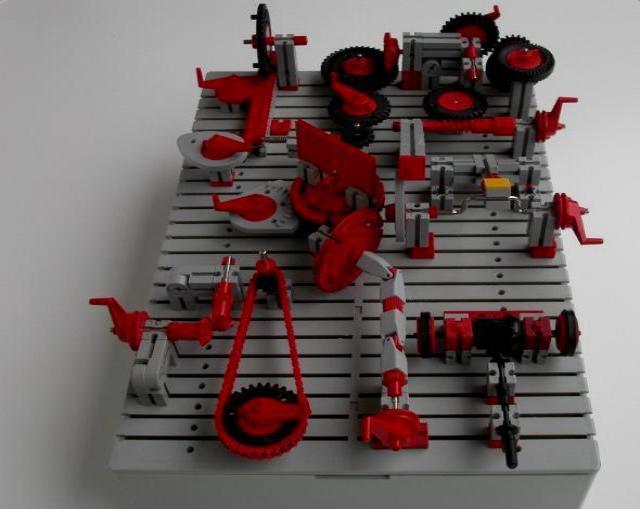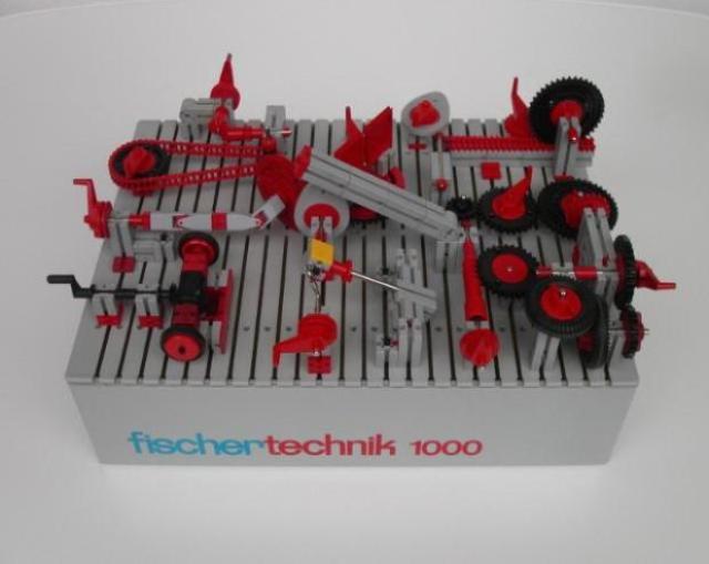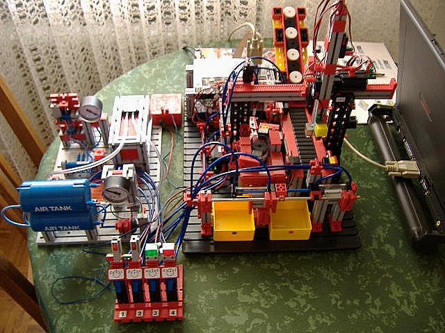 Pneumatische Sortierung der Fischertechnik-Bauteile schwarz und weiss mittels Sensor (hell und dunkel) im zugeordnetem Behälter. |  | | Darstellung von verschiedenen Antriebstechniken bzw.Über oder Untersetzungen mit Fischertechnik Bauteilen. |